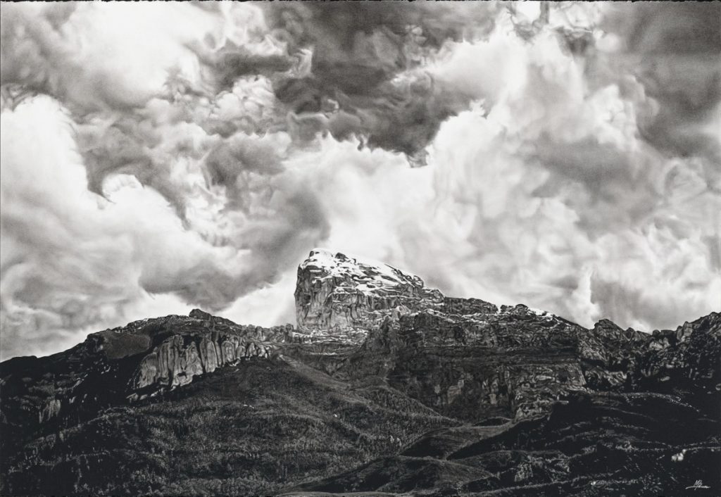 Mack’s captivating scenes come from his use of detail and scale in his artworks. Each drawing is the result of a dedicated, time-intensive process. His work captures the power and complexity of place through bold contrast and meticulous detail.
