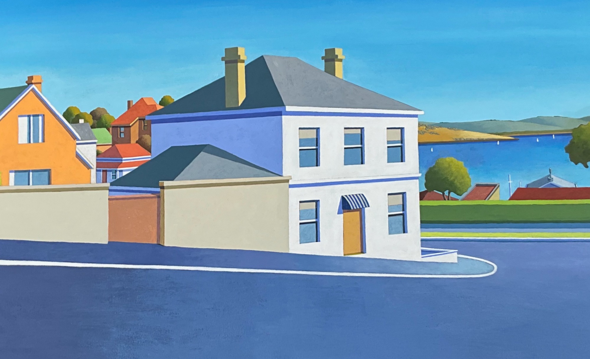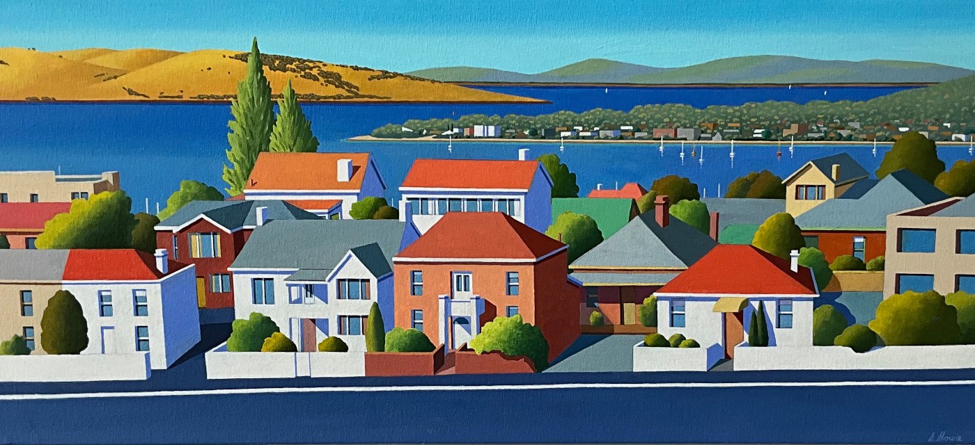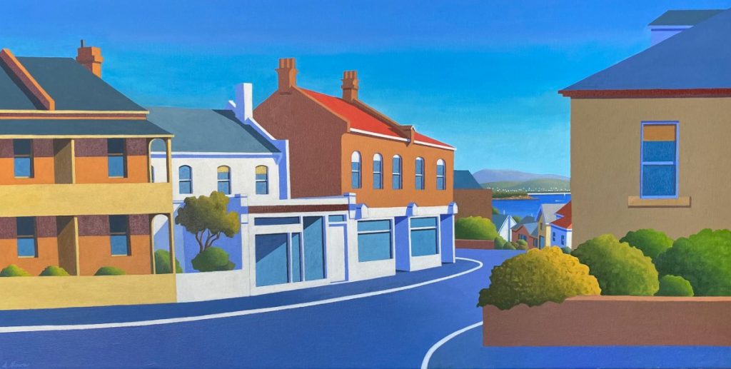 I love to paint urban landscapes. They allow me to use the full colour spectrum, combining the brightness of painted buildings with the more subtle colours of the natural environment. Similarly, the geometric lines of man-made structures, and the resulting strong shadows contrast with the fluid shapes of nature.